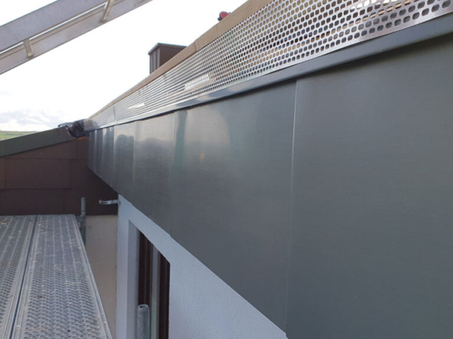 - Giebelverkleidung in Stehfalz und Winkelstehfalzbauweise, kompletter Unterbau mit Isolierung